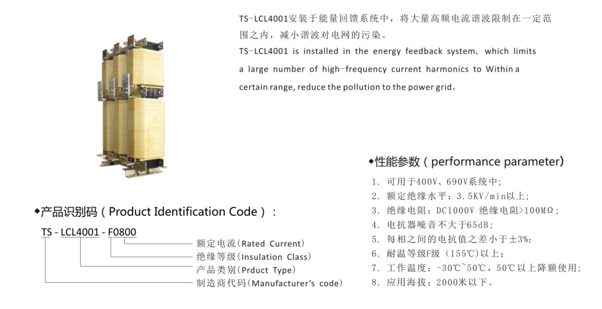 產品介紹:安裝于能量回饋系統中,將大量高頻電流諧波限制在一定范圍之內,減小諧波對電網的污染。