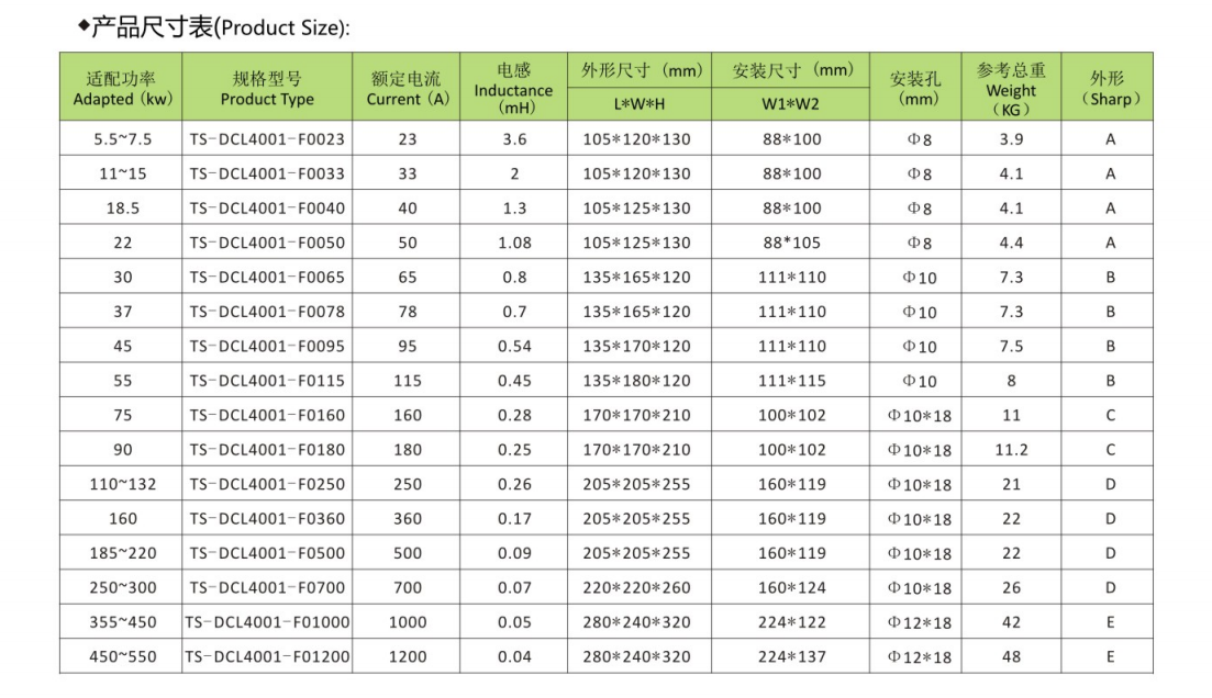 產品介紹:用于變頻器直流母線側,降低輸入側電流畸變率,保護母線電容、延長其使用壽命。